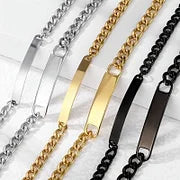 304 Stainless Steel Cuban Link Chain Curb Chain Plating Solid Color Rectangle Bracelets