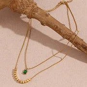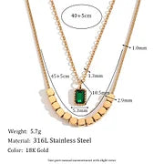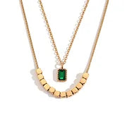 Square Pearl Grandmother Green Water Diamond Pendant Double Layer Necklace - Gold